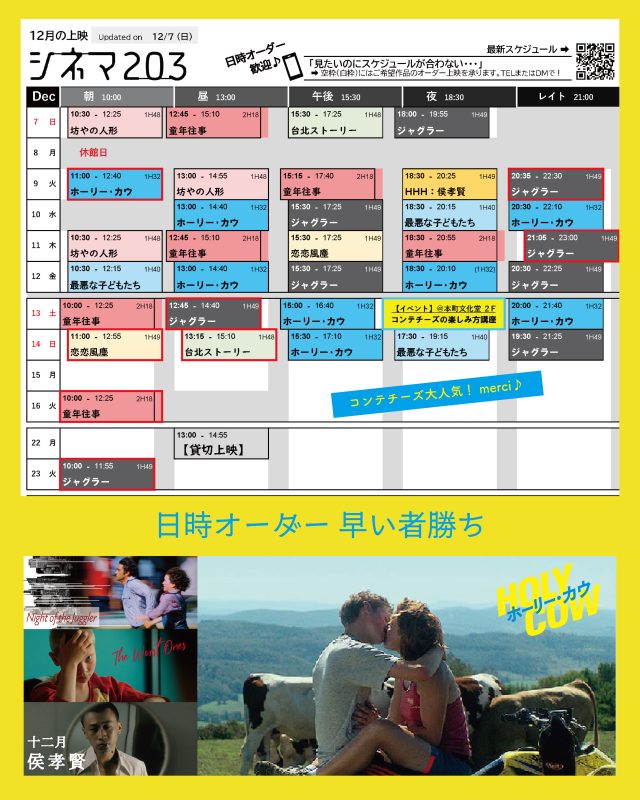 🎬各回10分前にチケット販売&開場します。予約不要。当日ふらりとお越しください。